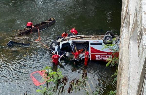 Durante o resgate das vítimas, uma carreta carregada com eucalipto desceu desgovernada, bateu em uma ambulância e uma viatura do Corpo de Bombeiros de Teixeira de Freitas, os dois veículos também caíram no rio.