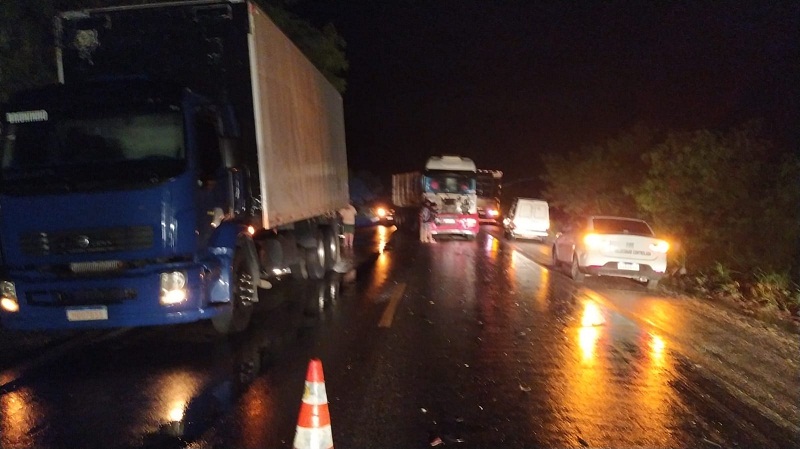 Um acidente envolvendo quatro veículos no KM 930 da BR-101 deixou dois feridos, um deles em estado grave. O fato aconteceu na noite da última quarta-feira (23) por volta das 19h15. Informações colhidas no local dão conta de que houve uma colisão frontal entre um VW Saveiro, de cor cinza, placa  KDZ-2G31 (Mercosul) e um caminhão munk, placa MOI-9B22 (Mercosul) fazendo com que outros dois veículos também fossem envolvidos no acidente, sendo um veículo Volvo de cor azul, placa  MQQ-7B55 (Mercosul) licenciado em Linhares/ES, que colidiu com o veículo Iveco, de cor branca, placa ODA-4F14, licenciado em Santa Maria Jetibá/ES. Os condutores desses outros dois veículos não apresentaram problemas visíveis, gerados pelo baque.