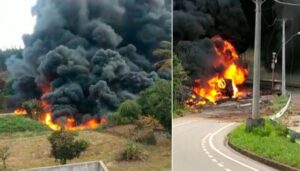 Afonso Cláudio: caminhão que transportava gasolina explode e motorista morre carbonizado