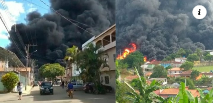 O fogo se alastrou pelos dois lados da rodovia. Há uma creche e residências nas imediações