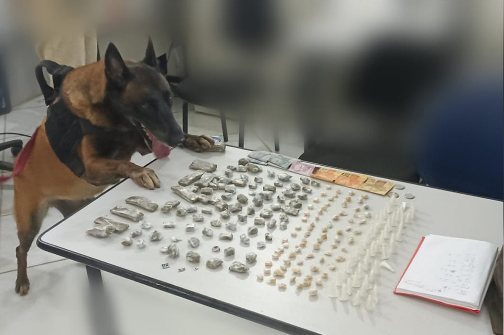 Mais de 200 porções de drogas foram apreendidas em duas ações do 8º Batalhão da Polícia Militar (8º BPM/Porto Seguro), na terça-feira (4), no distrito de Trancoso, em Porto Seguro. Em uma delas, brilhou novamente o trabalho da K9 Kira. No início da tarde, uma guarnição realizava rondas no Condomínio 2000, após denúncia de tráfico, quando um homem tentou fugir da viatura e acabou flagrado com pinos de cocaína. Ao realizar buscas no local, o cão policial Kira encontrou uma sacola plástica com mais drogas. No total, foram apreendidas 90 buchas de maconha, 58 pedras de crack, 48 pinos de cocaína, 16 comprimidos de ecstasy, sete microporos de LSD e uma quantia em dinheiro. Segundo o comandante do 8° BPM, tenente-coronel Alexandre Costa de Souza, como é comum, naquela localidade, os criminosos esconderem drogas, foi utilizado o K9 Kira para realizar buscas na área. O preso foi encaminhado para a Delegacia Territorial (DT) de Trancoso. Tiros contra os policiais Horas antes, por volta das 11h, na rua Alfa, um homem realizou disparos com arma de fogo contra a viatura que fazia patrulhamento na área. “Após os disparos, o criminoso correu e abandonou uma bolsa. Dentro dela, encontramos 21 pedras de crack, 13 porções de maconha e seis pinos de cocaína”, disse o comandante do 8º BPM. Fonte e fotos: Ascom/SSP-BA