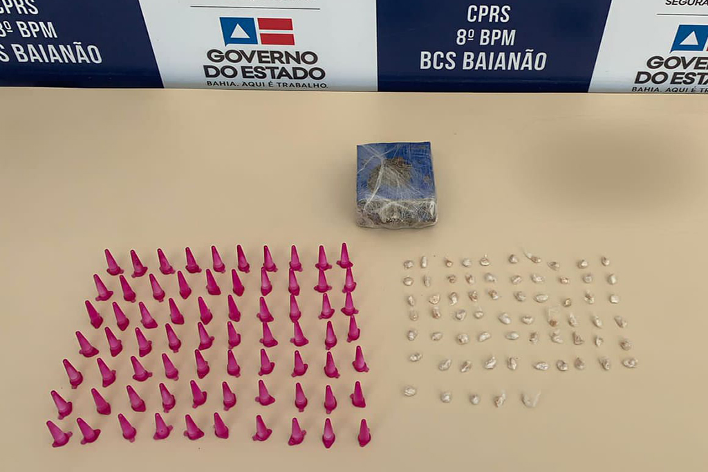 Quatro pessoas foram presas com mais de 180 porções de maconha, cocaína e crack, na quarta-feira (5), em Porto Seguro. As prisões foram feitas por equipes do 8° Batalhão da Polícia Militar (8º BPM) nos bairros Baianão e Parque Ecológico. Na primeira ação policial, dois homens e uma mulher foram flagrados, nas proximidades de uma instituição de ensino, com 55 trouxas de entorpecentes e R$ 187,00. Na segunda ação, um homem carregava uma sacola. Quando ele avistou os PMs, tentou se desvencilhar dos materiais. Com ele, foram apreendidas 130 porções de crack e cocaína, além de um celular. Aumento de policiamento O tenente-coronel Alexandre Costa de Souza disse que a unidade tem aumentado o policiamento perto das escolas da cidade. “Os quatro foram apresentados na Delegacia Territorial (DT), onde estão à disposição da Justiça. Estamos em parceria com a Base Comunitária de Segurança da região para dar o suporte nas instituições de ensino e coibir o tráfico”, finalizou o oficial. Fonte e foto: Ascom/SSP-BA