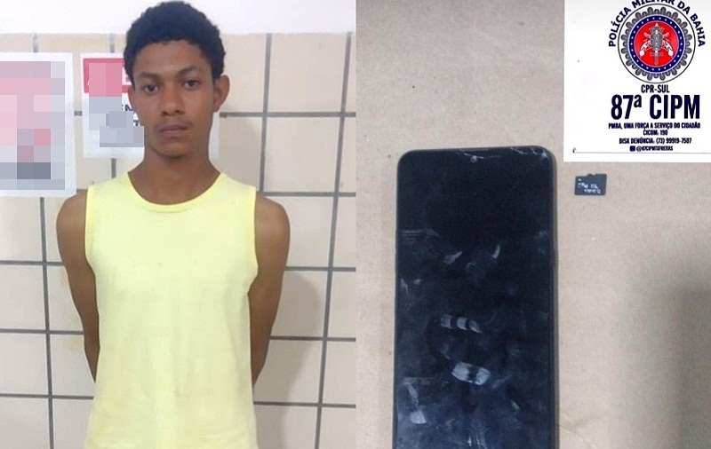Teixeira de Freitas: A prisão aconteceu na noite desta segunda-feira, 16 de janeiro, por volta das 18h00, em via pública, na Rua Céu Azul, no Bairro Liberdade II, na cidade de Teixeira de Freitas, quando policiais militares do Pelotão de Emprego Tático Operacional (PETO) de Teixeira de Freitas, foram informados pelo CICOM/190, sobre um roubo de celular. De imediato, os policiais deslocaram-se ao local informado, e chegando no endereço, identificou a vítima de 22 anos, que relatou ao sair de uma academia que foi surpreendida pelo suspeito, o qual fa,e do uso da força, tomou de suas mãos 01 aparelho LG e fugiu. Na sequência, foram realizadas rondas nas adjacências, sendo encontrado o suspeito do roubo. Após busca pessoal, foi encontrado na posse do suspeito, 01 aparelho celular LG (sa vítima). Diante dos fatos, o indivíduo recebeu voz de prisão, foi conduzido e apresentado na Delegacia Territorial de Teixeira de Freitas, onde foi identificado como sendo, Breno Figueiredo Macedo, de 19 anos. A delegada plantonista, Andressa Carvalho, flagranteou o Breno Figueiredo pelo crime de roubo (Art. 157 do CPB). Breno Figueiredo segue preso na custódia da Polícia Civil de Teixeira de Freitas, à disposição da Justiça. Ele será recambiado nos próximos dias para o Conjunto Penal. Breno é o mesmo jovem que recentemente familiares pediram para publicar uma matéria sobre o seu desaparecimento. E após ele ter visto a matéria, procurou a polícia para dizer que não estava desaparecido, apenas não queria mais morar com a família e saiu de casa. Fonte: LN