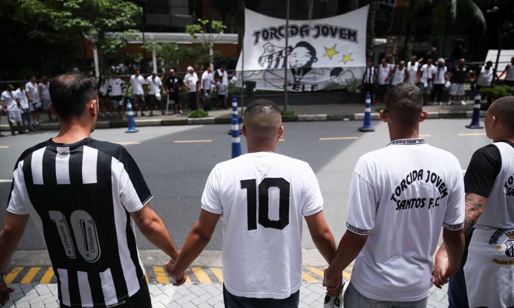 Torcedores foram hoje (4) à porta do Hospital Albert Einstein, no Morumbi, zona oeste paulistana, se solidarizar com o ex-jogador Edson Arantes do Nascimento, o Pelé. A vigília foi convocada pela torcida jovem do Santos, time em que Pelé iniciou a carreira. O grupo levou uma bandeira com uma imagem do ex-jogador quando jovem e colou mensagens de apoio na grade no jardim do hospital. Alguns moradores do bairro também se juntaram ao ato, como o aposentado Ciro Estivale dos Santos, que foi acompanhado das duas filhas: Manoela, de 7 anos de idade, e Rafaela, com 11. Segundo ele, a ideia de ir à homenagem foi da filha mais velha. “Ele deu tanta alegria para gente. Então, agora, é um pouco da gente para ele. Torcer para o pronto restabelecimento dele, para que ele fique bem, que consiga fazer mais um gol de placa na vida dele”. Ciro conta que chegou a ver Pelé jogar no auge de sua carreira. “Meu pai era santista. Sempre fui no estádio, sempre acompanhei. Vi ele no auge, vários gols no Morumbi, Pacaembu, na própria Vila Belmiro”, contou. Também morador da região, Macos Bispo dos Santos estava emocionado na porta do hospital. Ele conta que nasceu em Santos, onde iniciou a carreira no mercado financeiro no Banco Nacional, onde Pelé e os outros jogadores do Santos tinham conta bancária. Segundo Marcos, quando os jogares precisavam de atendimento na instituição, acabavam por mobilizar todas as atenções. “Era uma festa. Naquela época eu era um simples funcionário. Para nós era uma festa, estar [com ele] não só no campo, que eu carregava desde criança, [mas também] como adulto estar com ele no banco em que você trabalha. Era uma sensação inacreditável. Ele ia para a mesa dos gerentes do banco e ficava aquela multidão [em volta]. A agência parava”, lembra. Tratamento Pelé foi internado no Albert Einstein na terça-feira (29) para uma reavaliação da terapia quimioterápica do tumor de cólon, identificado em setembro de 2021. A retirada do tumor ocorreu em 4 de setembro de 2021. Desde então, Pelé é submetido a um tratamento de quimioterapia, com idas regulares ao hospital. De acordo com o boletim médico divulgado ontem (3), o ex-jogador tem tido boa resposta aos cuidados na infecção respiratória, “não apresentando nenhuma piora no quadro nas últimas 24 horas”. Em sua conta no Instagram, Pelé disse estar fazendo seu tratamento “como sempre”. “Meus amigos, eu quero manter todos tranquilos e com o pensamento positivo. Estou forte, com muita esperança e sigo meu tratamento como sempre. Quero agradecer a toda equipe médica e de enfermagem, por todo zelo que tenho recebido”, escreveu o ex-jogador de 82 anos. Edição: Valéria Aguiar Fonte: Agência Brasil