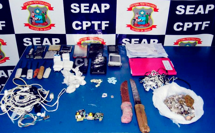 Teixeira de Freitas: A Operação Revista aconteceu durante o dia desta quarta-feira, 09 de novembro, no Conjunto Penal de Teixeira de Freitas (CPTF), com início às 06h00 e término às 11h30, e resultou na apreensão de ilícitos. Foram vistoriadas as estruturas das 27 celas do Pavilhão “A”, onde estão custodiados 184 (cento e oitenta e quatro) internos que cumprem pena no regime fechado. A operação foi realizada por 35 (trinta e cinco) policiais penais, com o apoio de 20 (vinte) Policiais Militares da CIPE-Mata Atlântica; 03 (três) Policiais Militares da CIPGd e 04 (quatro) Policiais Civis. Ao todos os policiais apreenderam 06 aparelhos celulares; 04 carregadores de celular; 06 baterias de celular; 01 chip de celular; 06 fones de ouvido; 03 facas artesanais; 06 chunchos; 01 caderno com anotações; 10 folhas com anotações; 08 cabos USB. Além dos materiais acima, foram apreendidos 152 gramas de maconha; 20 gramas de cocaína; 18 comprimidos de estimulante sexual; e 03 comprimidos de êxtase (droga sintética). Durante a Operação de Revista não foi registrado intercorrência ou ato de indisciplina. Segundo o diretor do CPTF, o policial penal, Tito Vinhas, a operação será constante e visa o combate à entrada de ilícitos na Unidade Prisional. “Queremos garantir o controle do Conjunto Penal de Teixeira de Freitas, garantindo a integridade física dos internos e dos servidores que atuam na Unidade Prisional. Durante a operação de revista não foi registrado intercorrência ou ato de indisciplina”, disse Tito Vinhas. Fonte: LN
