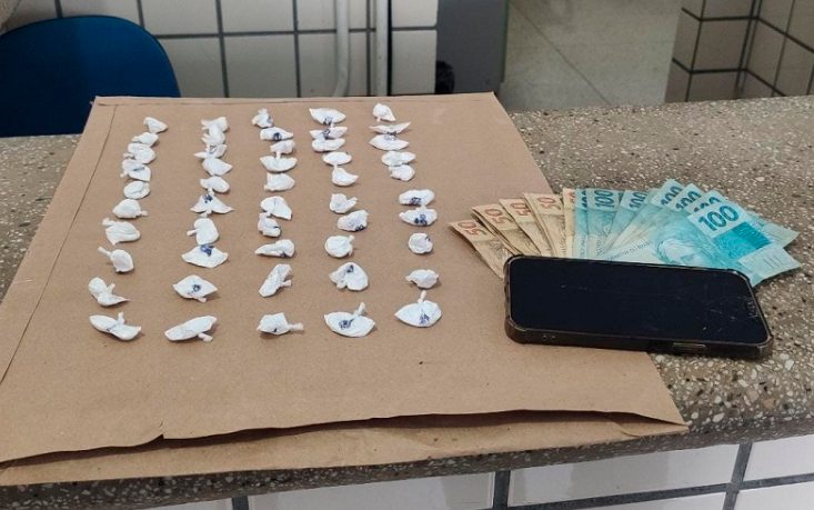 Teixeira de Freitas: A prisão aconteceu na tarde desta terça-feira, 08 de novembro, por volta das 15h00, em via pública no Bairro Bela Vista, na cidade de Teixeira de Freitas. De acordo com as informações, policiais militares da ROTAM (Moto Patrulhamento) estavam em rondas ostensivas, quando foram informados que um suspeito estaria traficando drogas naquela região. Ao chegarem no local denunciado, os militares avistaram um suspeito com as mesmas características da denúncia, e na sequência o suspeito foi abordado. Com ele, foi encontrado 50 (cinquenta) papelotes de cocaína; 01 aparelho celular e a quantia de R$ 1.500,00 (hum mil e quinhentos reais) em espécie. O suspeito recebeu voz de prisão, foi conduzido e apresentado na Delegacia Territorial de Teixeira de Freitas, onde foi identificado como sendo, Fábio Sant’Anna Relo, de 29 anos, morador do Bairro Colina Verde. Após oitiva, o delegado plantonista, Ricardo Amaral, flagranteou o Fábio Sant’Anna pelo crime de tráfico de droga (Art. 33). Fábio segue preso na custódia da Polícia Civil de Teixeira de Freitas, à disposição da Justiça. Fonte: LN