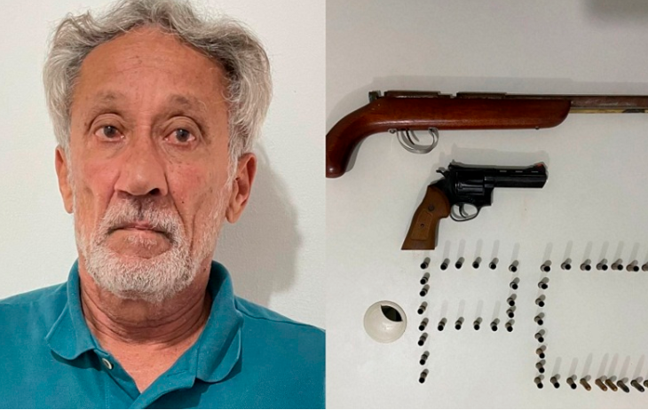 Caravelas: A equipe da Polícia Civil de Caravelas, sob o comando do delegado titular, Marco Antônio Neves, prendeu nesta terça-feira, 25 de outubro, por volta das 09h30, o idoso Antônio Augusto Rodrigues Machado, 65 anos de idade. Contra o Antônio Augusto havia um Mandado de Busca e Apreensão, expedido pela Vara Criminal de Caravelas. De posse do mandado, os policiais civis dirigiram-se ao endereço de Antônio Augusto, localizado na Avenida Ministro Adalicio Nogueira, no Bairro Tancredo Neves, em Caravelas. Chegando no endereço, os policiais foram atendidos pelo próprio suspeito, sendo informado quanto ao cumprimento de mandado de busca e apreensão em sua residência. Durante a referida busca, os policiais encontraram em um dos quartos do imóvel, uma arma de fogo, tipo revólver, marca Amadeo Rossi, n° E123771, calibre 38 e em uma das gavetas de um “criado mudo” foi encontrado 06 (seis) munições intactas calibre 38 e 37 (trinta e sete) estojos deflagradas de munição calibre 38. Também foi localizado na sala do imóvel, em um armário, outra arma de fogo artesanal, cabo de madeira. Após o encerramento das buscas, os policiais civis se dirigiram a uma propriedade rural, de propriedade do suspeito, não sendo encontrado nada de ilícito. O suspeito foi conduzido à Unidade Policial com os objetos a apreendidos, sendo autuado em flagrante pela prática do crime tipificado nos artigos 12 da Lei 10.826/03, sendo arbitrada fiança em seu favor. Após pagamento da fiança, mediante depósito bancário, o autuado foi liberado para responder em liberdade. Fonte: LN