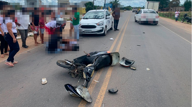 Acidente entre moto e carro deixa motociclista gravemente ferido na BR-418 em Posto da Mata