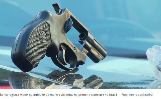 A Bahia foi o estado brasileiro que registrou a maior quantidade de mortes violentas no primeiro semestre de 2022, conforme mostra o índice nacional de homicídios criado pelo g1, com base nos dados oficiais dos 26 estados e do Distrito Federal. Os dados foram divulgados nesta quinta-feira (25). Em números absolutos, o estado contabilizou 2.630 mortes violentas (homicídios dolosos, latrocínios e lesões corporais seguidas de morte) entre janeiro e junho deste ano. Destas, 2.557 foram enquadradas como homicídio doloso, 43 como latrocínio e 30 como lesão corporal seguida de morte. O mês mais violento de 2022, conforme o Monitor da Violência, foi março, com 498 crimes, seguido do mês de maio, que contabilizou 461 mortes violentas. O estado que teve a segunda maior quantidade de mortes violentas em 2022 foi Pernambuco, com 1.854 casos. São Paulo, com 1.592 casos. Em seguida vieram São Paulo (1.592) e Rio de Janeiro (1.515). No primeiro semestre de 2021, a Bahia também registrou maior quantidade de mortes violentas, com 2.931 casos. Em comparação com os dados do mesmo período no ano passado, o estado teve queda de 10,26%, com 301 mortes violentas a menos. O Nordeste com 9.160 mortes no primeiro semestre de 2022, teve uma queda de 4,7% em comparação ao mesmo período de 2021, quando registrou 9.609. Entre janeiro e junho deste ano, a Bahia foi responsável por 28,71% dos casos na região. Os dados apontam que: Houve 2.630 assassinatos no primeiro semestre de 2022, o que significa 301 mortes a menos que no mesmo período de 2021; Queda em um ano foi de 10,26%; Mês mais violento foi o de março, com 498 crimes. Veja quantidade de mortes violentas na Bahia neste ano Crimes JAN/22 FEV/22 MAR/22 ABR/22 MAI/22 JUN/22 Feminicídio 10 7 3 8 8 6 Homicídio doloso 388 404 484 419 444 376 Lesão corporal seguida de morte 5 4 5 5 4 7 Latrocínio 4 8 6 8 5 12 Total de mortes 407 423 498 440 461 401 Fonte: SSP-BA Brasil O Brasil teve uma queda de 5,2% nos assassinatos no primeiro semestre de 2022 na comparação com o de 2021. No ano passado, foram registradas 21.228 mortes violentas, contra 20.133 em 2022. Ou seja, 1.095 mortes a menos. Estão contabilizadas no número as vítimas de homicídios dolosos (incluindo os feminicídios), latrocínios e lesões corporais seguidas de morte. O levantamento, que compila os dados mês a mês, faz parte do Monitor da Violência, uma parceria do g1 com o Núcleo de Estudos da Violência da Universidade de São Paulo (NEV-USP) e o Fórum Brasileiro de Segurança Pública. Fonte: G1
