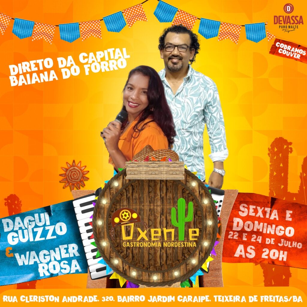 Franedir Gois/OPovonews Wagner Rosa e Dagui Guyzzo, o Duo que vem numa parceria musical evoluindo a cada ano. Ambos artistas baianos, possuem expressiva experiência musical. Ela soteropolitana cantora e compositora foi campeã no I Festival de Música na categoria intérprete e ele bonfinense com sete CDs gravados. Ambos com influência musicais peculiares em suas trajetórias, hoje experienciam uma simbiose musical, com um repertório que passeia pelos vários ritmos da MPB, que vai do forró ao samba, do reggae ao axé, parceria essa que vem dando muito certo. Wagner Rosa e Dagui Guyzzo acreditam em simplicidade como a forma que melhor traduz luxo que enriquece, a sonoridade musical que reproduzem através das escolhas das canções que compõe o repertório, buscando sempre uma nova leitura em cada execução. O Duo também acredita que a música é um instrumento de cura e libertação, por isso a qualidade deve estar presente em cada apresentação, e buscam mostrar isso tanto na execução das canções quanto na qualidade e plasticidade dos figurinos. Registros do show o Arraiá da LOOP Live. A parceria entre Wagner Rosa e Dagui Guyzzo vem há um bom tempo, conseguindo concretizar vários trabalhos musicais em eventos importantes no Centro Norte da Bahia