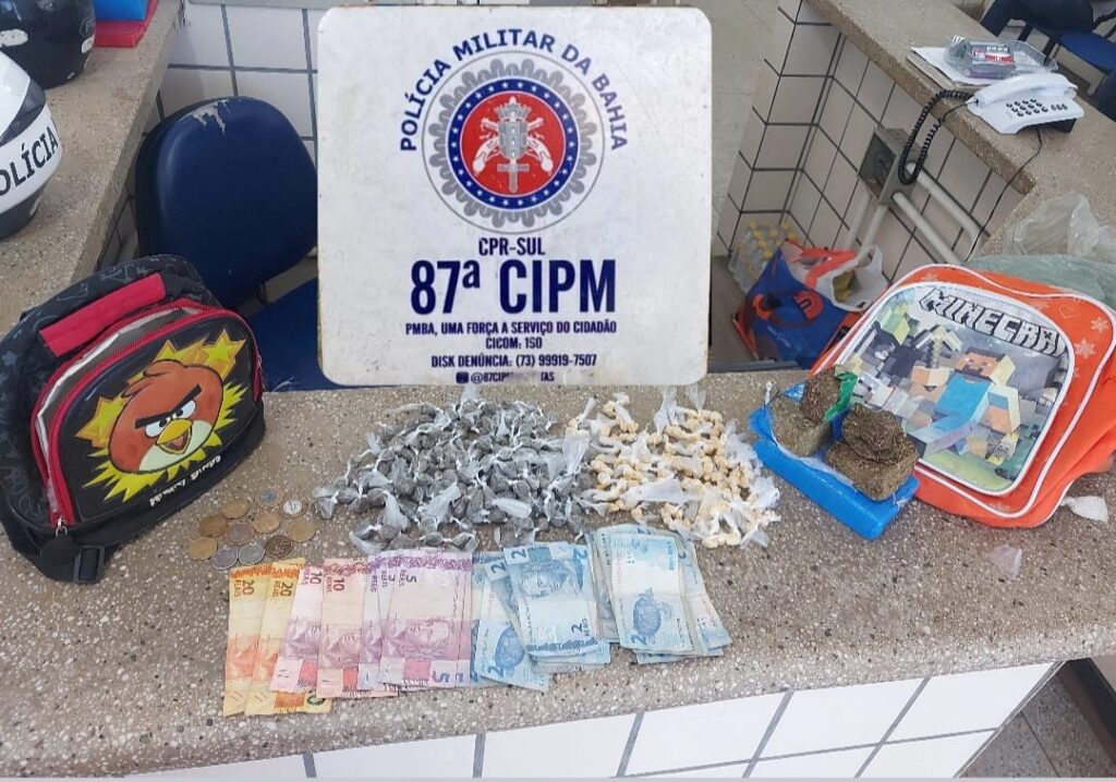PM apreende bolsa infantil com quase um quilo de maconha e crack em Teixeira de Freitas