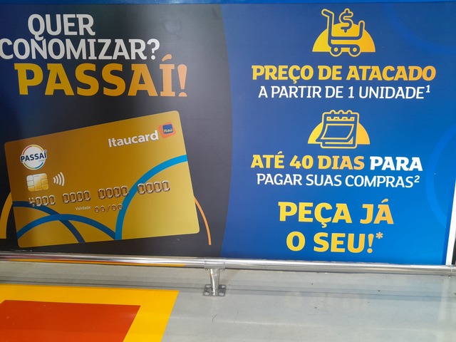 Franedir Gois/OPovonews Nas lojas ASSAÍ, ao efetuar o pagamento de suas compras com o cartão de crédito Passaí, pague o preço de atacado comprando em quantidades de varejo. Direito de pagar preço de atacado em qualquer produto no Assaí a partir de uma única unidade; Desconto de 50% nos ingressos para cinemas e teatros selecionados; Possibilidade de pagamento em até 40 dias; Descontos e vantagens em lojas parceiras; Nossa reportagem conversou com Adson, representante do Cartão PASSAÍ, em Teixeira de Freitas. Veja o vídeo com Adson falando das facilidades: