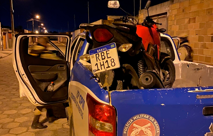 Teixeira de Freitas: A apreensão aconteceu na madrugada desta quarta-feira, 06 julho, no Bairro Residencial Castelinho, na cidade de Teixeira de Freitas. Trata-se de uma motocicleta Honda Fan 160, de cor vermelha, placa policial RBE-1H18 (Mercosul), que estava abandonada no bairro. Após consulta no Banco Nacional de Dados, foi confirmada a restrição de furto/roubo. A motocicleta foi apresentada no plantão da Delegacia Territorial de Teixeira de Freitas, para as medidas cabíveis. Fonte: LN
