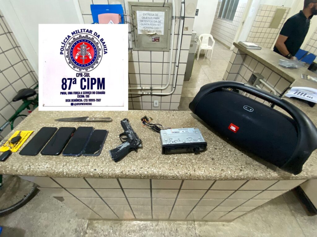 A Polícia Militar prendeu, na noite desta segunda-feira (20), em Teixeira de Freitas, três homens de 19, 26 e 42 anos e apreendeu um menor de 15 anos suspeitos de envolvimento com receptação de um veículo que havia sido roubado no último sábado (18), na cidade de São Mateus, no Espírito Santo. Dois suspeitos moram em Linhares e os outros dois em São Mateus. Eles foram abordados por policiais da 87ª Companhia Independente de Polícia Militar próximo ao Conjunto Penal de Teixeira de Freitas. Eles conduziam o Ford Classic, cor branca, placa MTT3E14, em cima de um guincho. Com eles os militares encontraram, além do carro roubado, um simulacro de arma de fogo e uma faca. Ascom 87ª CIPM