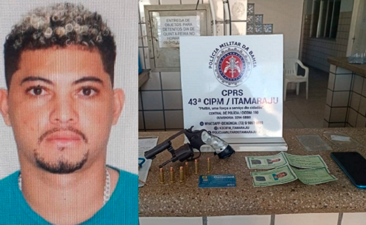 Itamaraju: A prisão aconteceu na tarde do último sábado, 18 de junho, por volta das 12h00, na zona urbana da Avenida Liberdade, no Bairro Liberdade, na cidade de Itamaraju-BA, após uma abordagem de rotina de policiais militares do Pelotão de Emprego Tático Operacional (PETO da 43ª CIPM de Itamaraju). Segundo a guarnição, ao avistar uma motocicleta Honda Pop, placa policial PRC-2H48 (Mercosul), os militares desconfiaram que o condutor aparentava estar com uma arma de fogo na cintura. Diante da situação, foi realizado um acompanhamento, onde o condutor recebeu voz de parada, e foi realizada a abordagem. Com ele foi encontrado 01 revólver calibre .38, marca Taurus, municiado com 06 (seis) cartuchos intactos, numeração 336841. Ao ser solicitado os documentos pessoais, o suspeito apresentou uma carteira de Identidade, em nome de Guilherme Ferreira Alves Júnior. Após alguns questionamentos os policiais descobriram se tratar de um documento falso e o suspeito levou os policiais até sua residência, onde apresentou o documento original. Trata-se de Edinaldo Dionísio de Oliveira, de 24 anos, natural de Belmonte-BA. O suspeito recebeu voz de prisão, foi conduzido e apresentado na Delegacia Territorial de Teixeira de Freitas. Após oitiva, a delegada plantonista, Rina Andrade, flagranteou o Edinaldo pelo crime de porte ilegal de arma de fogo (Art. 14) e no Art. 304 do CPB, uso de documento falso. Edinaldo segue preso na custódia da 8ª COORPIN de Teixeira de Freitas, à disposição da Justiça. Fonte: LN