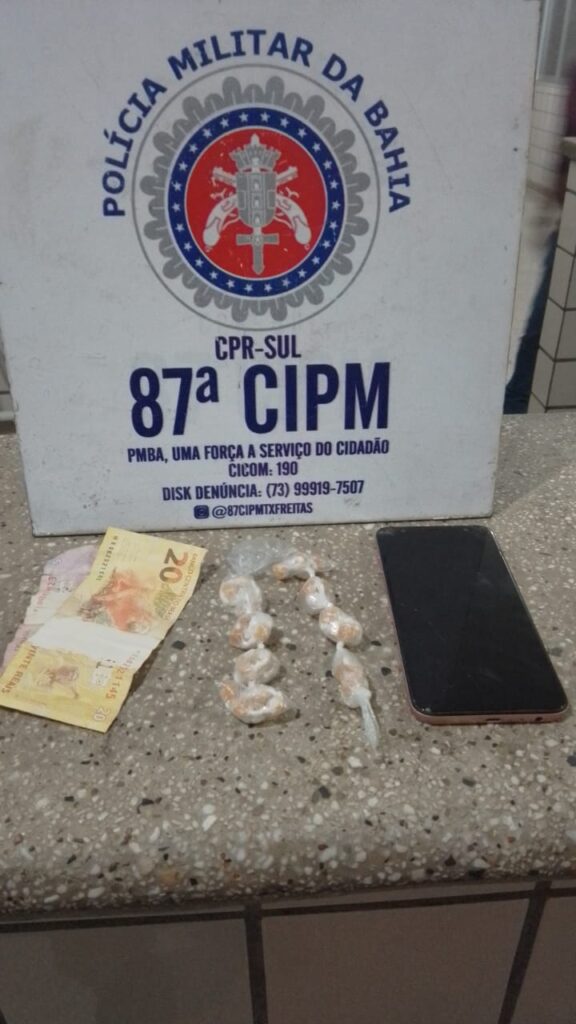 A Polícia Militar prendeu neste domingo (8), na cidade de Teixeira de Freitas, um homem com 47 pedras de crack. Ele foi abordado por volta das 21h30, na Rua Cruz das Almas, no Bairro Liberdade II. Ao ver a guarnição da 87ª Companhia Independente de Polícia Militar o suspeito dispensou uma sacola onde estava a droga e tentou fugir, mais foi alcançado pelos policiais. Também, na noite deste domingo, a PM prendeu um homem suspeito de receptação de uma motocicleta. Ele foi abordado na Rua Rui Barbosa, no Bairro Bela Vista, quando conduzia a moto CG Titan 150, cor vermelha e placa JRL 5579, que é produto de roubo. Ascom 87ª CIPM