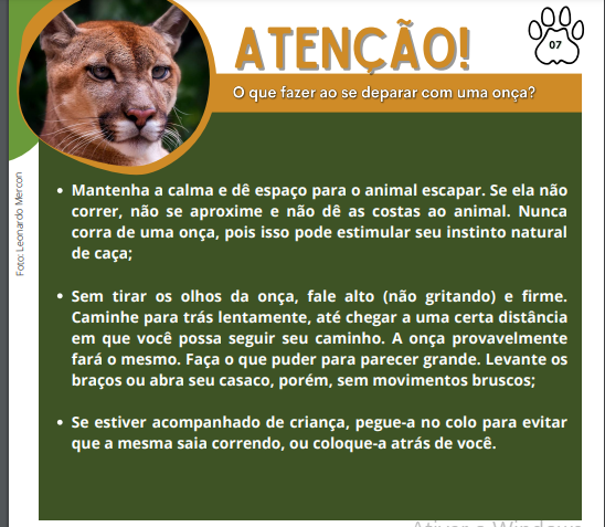 Por: Cleber Andrade/opovonews O aparecimento de onça-parda em comunidades que fazem limite com o Parque Nacional do Descobrimento (PND), na Bahia, motivou a releitura do manual de convivência produzido pelo ICM-Bio, que ensina como os moradores de tais comunidades devem reagir diante da presença do felino. De acordo com a estudante Flávia Rosa, o Guia Prático de Convivência do Centro Nacional de Pesquisa e Conservação de Mamíferos Carnívoros – CENAP/ICMBio (@icmbiocenap), que aborda particularidades sobre os predadores silvestres e animais domésticos é de grande importância para expandir a tolerância entre os membros das comunidades com os animais silvestres. Dentre as recomendações elencadas estão as de manter cães nas propriedades para que estes alertem em caso de aparecimento destes predadores; construir reservatórios de água, longe da floresta; manter vacas prenhas e com bezerros, também longe da floresta e desfazer-se de corpos de animais domésticos ou criações como forma de evitar que os animais silvestres se habituem a procurar estas carcaças nas proximidades das comunidades. O manual ainda expõe dicas importantes, de como o ser humano deve se portar, caso de depare com o animal e destaca os fatores que geraram este impacto. ACOMPANHE: https://www.instagram.com/p/CcVhKF7uK0e/?igshid=YmMyMTA2M2Y=