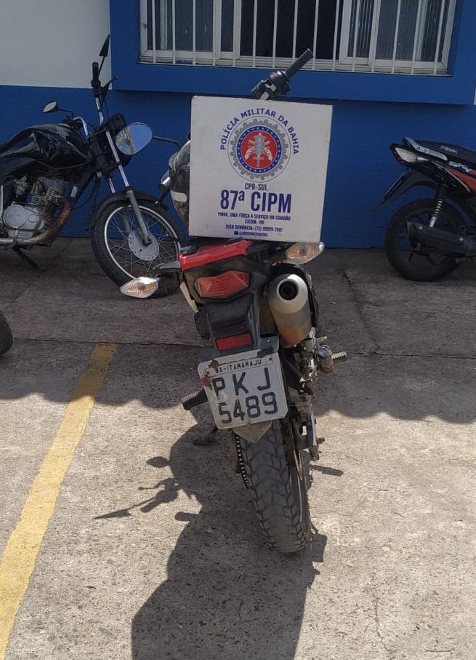 A motocicleta Honda Broz 160, cor vermelha, placa PKJ 5489, que havia sido roubada na cidade de Itamaraju, foi recuperada na manhã desta terça-feira (12), pela Polícia Militar, na cidade deTeixeira de Freitas. Policiais da 87ª Companhia Independente de Polícia Militar já tinham as características da moto e, durante ronda na Avenida Padre Anchieta, encontraram o veículo. Ao avistar a PM o condutor, que trazia um homem na garupa, empreendeu fuga, mas foi alcançado na Rua Camboja, no Bairro Liberdade II. Os dois suspeitos foram presos e a moto apreendida. Ascom 87ª CIPM
