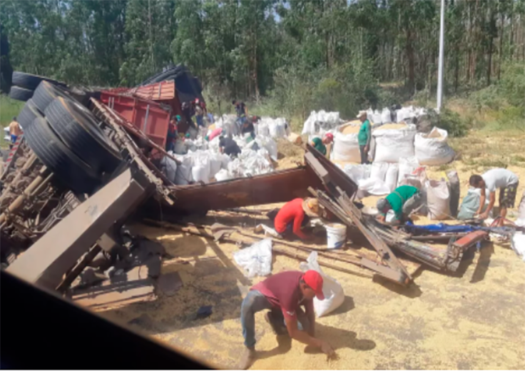 Uma carreta que fazia o transporte de uma carga de soja tombou em um trecho da BR-242, próximo à cidade de Cristópolis, no oeste da Bahia. O acidente aconteceu na manhã desta terça-feira (12) e deixou o trânsito lento na região; Segundo a Polícia Rodoviária Federal (PRF), ninguém ficou ferido. Até o início da tarde desta terça, o fluxo de veículos seguia intenso na via e agentes trabalhavam para tentar ordenar o tráfego no sistema “pare e siga”, porque o material ficou espalhado pelo asfalto e a pista precisou ser interditada para remoção do veículo. Até o momento, não há detalhes do que pode ter provocado o acidente, nem se outro veículo foi atingido pela carreta que tombou. A PRF também não detalhou o peso da carga e nem confirmou informação dada por populares, de que a soja que caiu no chão foi saqueada. O oeste da Bahia é destaque nacional no agronegócio, pois é um dos principais produtores de grãos do Brasil. Somente o município de São Desidério alcançou valor de R$ 4,6 bilhões com a produção em 2020, uma alta de 44,6% em relação ao ano anterior. A cidade está no segundo lugar do ranking nacional de produção agrícola. As informações foram divulgadas ano passado, pelo Instituto Brasileiro de Geografia e Estatística (IBGE).