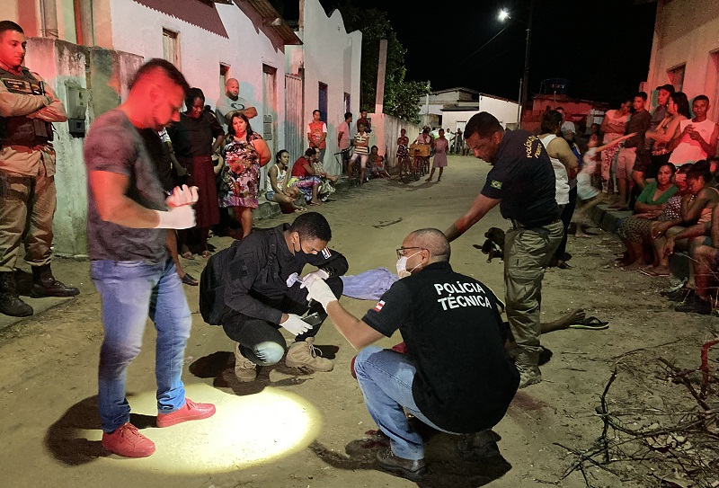 O homicídio consumado aconteceu na noite desta segunda-feira, 11 de abril, na Travessa Minelvino Costa Macedo, por volta das, 21h00, no distrito de Duque de Caxias, no município de Teixeira de Freitas. O local do crime foi preservado por policiais militares da 87ª CIPM e a Polícia Civil foi acionada. A delegada plantonista, Andressa Carvalho, autorizou a remoção do corpo para o Instituto Médico Legal (IML) para exames de necropsia e, posteriormente, o corpo será liberado aos familiares para sepultamento. A vítima foi identificada como sendo, João Vitor de Souza Alves, de 20 anos, conhecido como “Preto”. João Vitor foi atingido por 04 tiros, que acertaram a cabeça e as costas. O criminoso fugiu sem deixar pistas. A perícia recolheu alguns projéteis no local que provavelmente é de revolver. Segundo apurou nossa reportagem, a vítima teria recebido um telefonema e saiu e logo em seguida. Na sequência, foi executado a tiros. Ainda segundo informações, a mãe do João Vitor ainda pediu para ele não atender e nem sair, mas ele não ouviu a mãe. A motivação e a autoria ainda são desconhecidas. A Polícia Civil de Teixeira de Freitas vai investigar o crime. Fonte: LN