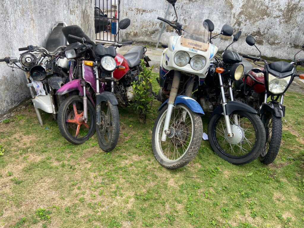 Sete motocicletas adulteradas foram apreendidas, na tarde de quinta-feira (7), por investigadores da Delegacia Territorial (DT) de Caravelas. Um homem, de 39 anos, foi autuado por receptação e adulteração de sinal identificador de veículo. O flagrante ocorreu na oficina do suspeito, no distrito de Barra de Caravelas, após denúncia anônima. De acordo com o titular da unidade policial, delegado Marco Antônio de Oliveira Neves, as motos estavam com chassi suprimido, sem placas e sem documentos de porte obrigatório.