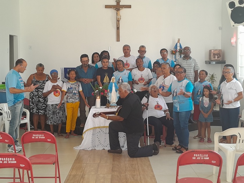 Franedir Gois/OPovonews A Comunidade de Nossa Senhora Rainha, pertencente à Paróquia São João Batista realizou na manhã de domingo, 8 de outubro o encontro mariológico sobre o Terço à Luz da Palavra de Deus. Com citações da Bíblia a cada ato do terço rezado e meditado. Coordenadores da Legião, pertencentes às paróquias de São José Operário, São João Batista e Imaculada Conceição. A presença de Jadir, que é coordenador diocesano do Movimento da Mãe Peregrina fortaleceu o encontro no aprimoramento dos conhecimentos bíblicos, através do terço rezado à cada dia pelos devotos de Nossa Senhora. Outubro é o mês do rosário, é o mês de Maria, assim como o mês de agosto se celebra a festa da Assunção, no dia 15. Em outubro além de ser o mês de Nossa Senhora Aparecida, padroeira do Brasil, é, também o mês do rosário que coroa a grande Rainha do Céu e da Terra. A finalidade da Legião de Maria é a glória de Deus, por meio da santificação pessoal dos seus membros, pela oração e cooperação ativa, sob direção da autoridade eclesiástica, na obra de Maria e da Igreja: O esmagamento da cabeça da serpente e a extensão do Reino de Cristo. O encontro foi pautado na reunião do Praesidium, reunião que é realizada mensalmente, onde debatem as atividades que foram realizadas no decorrer do período. Praesidium é a base da Legião de Maria, pois é onde encontram-se legionárias e os legionários, que além de orações e reflexões sobre a Legião, desenvolvem trabalhos filantrópicos com a comunidade e realizam suas orações.
