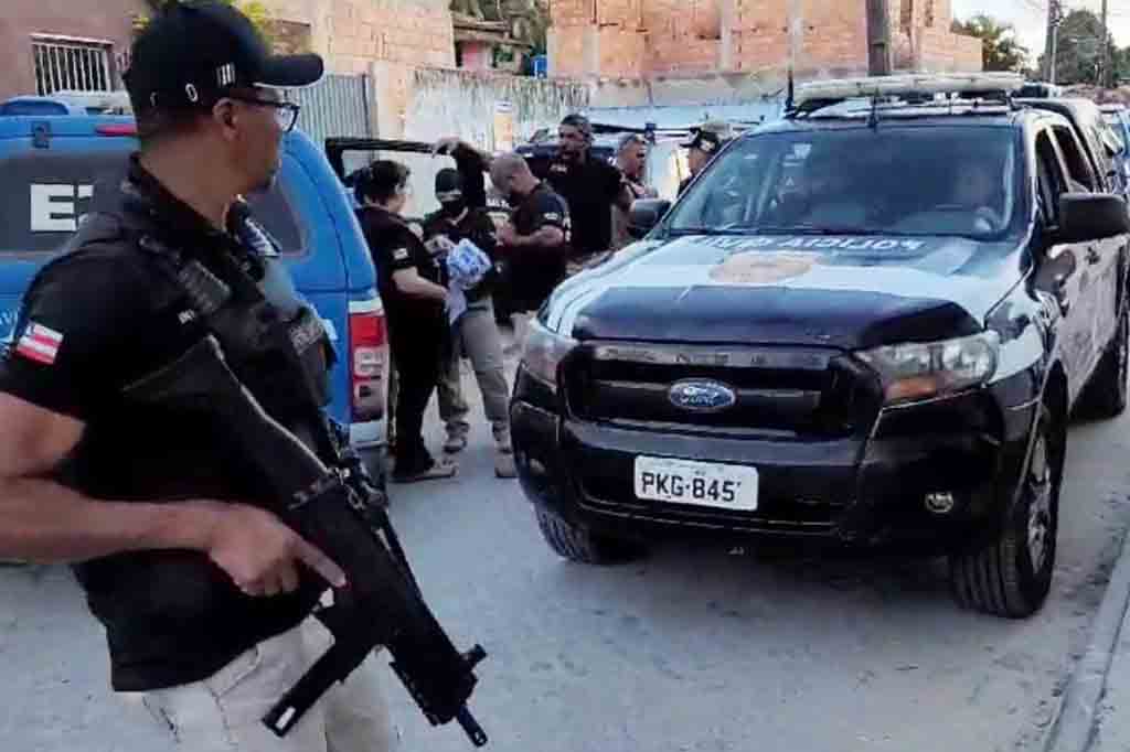 Policiais civis e militares já cumpriram seis mandados de prisão e 14 de busca e apreensão durante a Operação Cruzeiro, deflagrada pela 23ª Coordenadoria Regional de Polícia do Interior (Coorpin / Eunápolis), do Departamento de Polícia do Interior (Depin), nesta quarta-feira (23), no bairro Cruzeiro, em Santa Cruz Cabrália. O objeto da operação é retirar do convívio social envolvidos com o tráfico de drogas, homicídios e associação criminosa. As ações são decorrentes das investigações sobre os homicídios do indígena Dennis Kawhã Santos da Cruz, de 16 anos, ocorrido em julho deste ano, e de Leizo Udson dos Santos, 42, ocorrido no dia 1º deste mês. Os seis presos serão encaminhamos para realização de exames no Departamento de Polícia Técnica (DPT) e, em seguida, para o sistema prisional. Ação conjunta Mais de 150 policiais, entre civis e militares, realizam buscas em diversos pontos da região. A Operação Cruzeiro tem a participação de equipes das Coorpins de Itapetinga e Teixeira de Freitas, da Coordenação de Operações e Recursos Especiais (Core), da Coordenação de Apoio Técnico à Investigação (Cati/Depin), da Secretaria de Administração Penitenciária e Ressocialização (Seap), do Departamento de Polícia Técnica (DPT), além da Polícia Militar, por meio do Grupamento Aéreo (Graer), do 8º Batalhão de Polícia Militar (BPM), da Rondesp-Sul, Companhia Independente de Policiamento Especializado (Cipe-Mata Atlântica) e Companhia Independente de Policiamento de Proteção Ambiental (Cippa). Fonte: Ascom/PC – Fotos: Divulgação/SSP