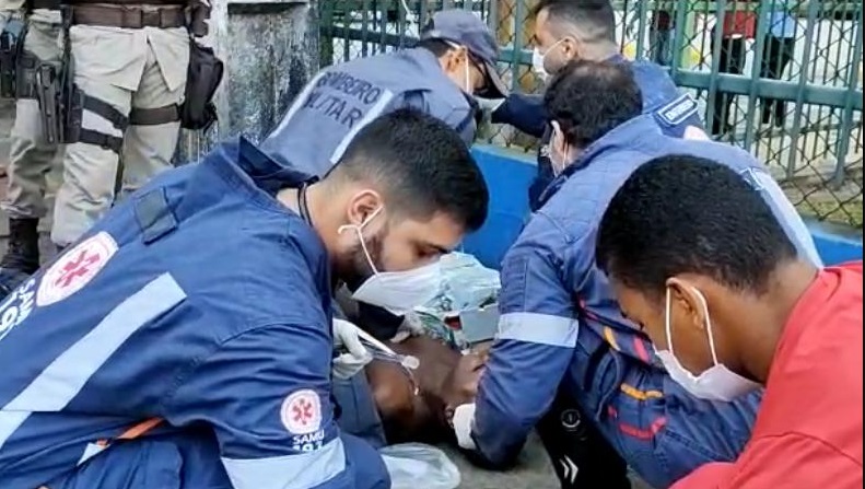A vítima inicialmente foi atendida pelos policiais militares e, os bombeiros que passavam pelo local a caminho das suas unidades avistaram a ocorrência e prontamente apoiaram os policiais, assumindo o procedimento de ressuscitação cardiopulmonar (RCP), acionando logo em seguida uma ambulância de suporte avançado do Serviço de Atendimento Móvel de Urgência (Samu).