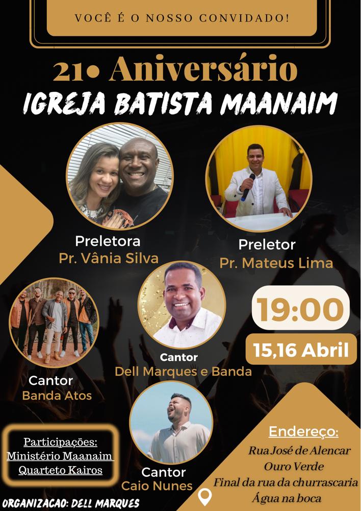 Dell Marques, presença da pastora cantora Vânia Silva no 21º aniversário da Igreja Batista Maanain