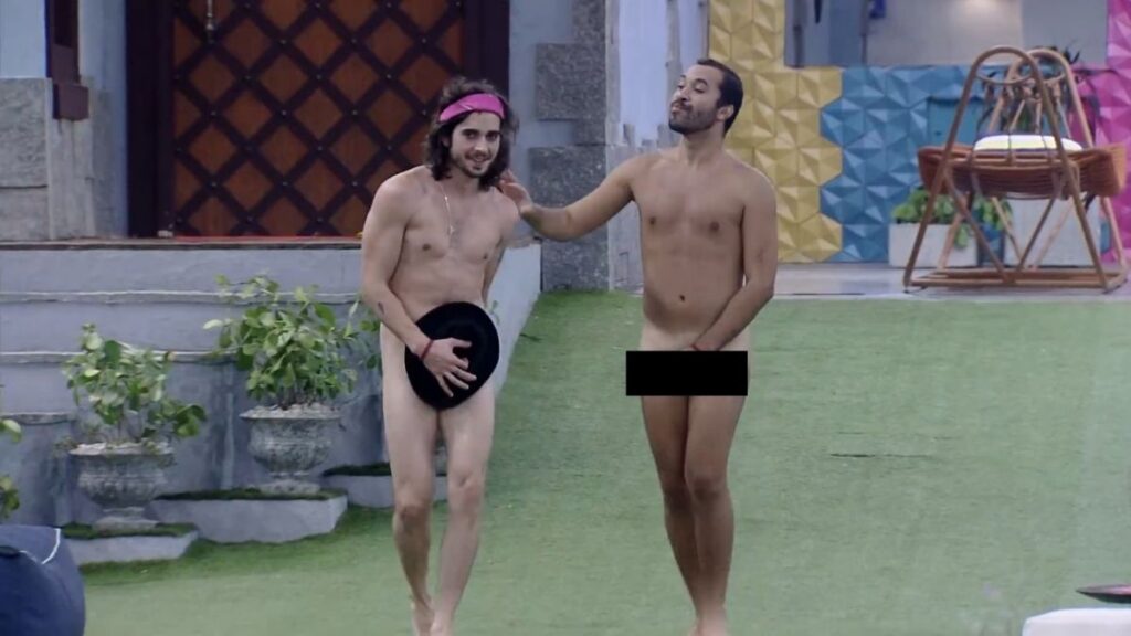 Fiuk e Gil celebraram a permanência no “BBB21” de forma inusitada. Pelados, os dois pularam na piscina após darem um selinho, cumprindo uma promessa feita antes do resultado da berlinda.