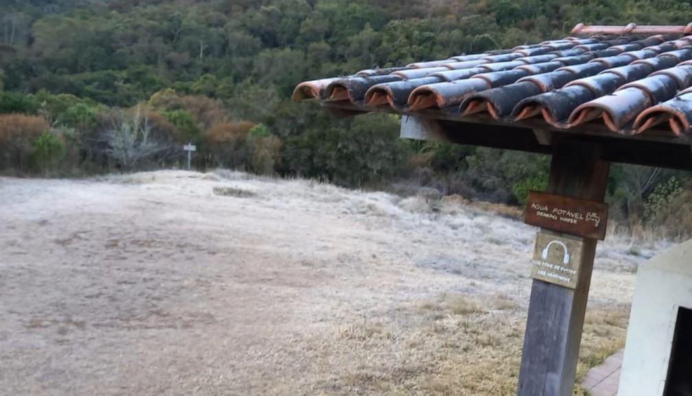 Na portaria do parque, no distrito de Pedra Menina, em Dores do Rio Preto, fazia 4ºC por volta das 6h40.