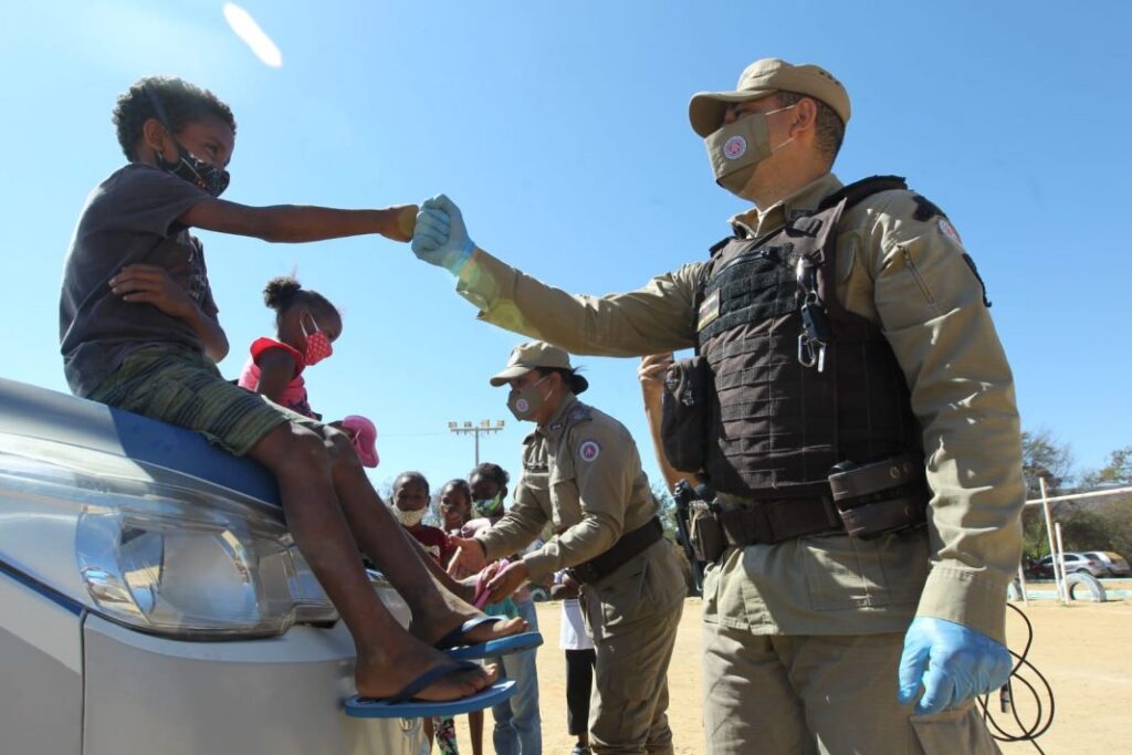 Seis em cada dez municípios baianos têm localidades quilombolas (245 cidades dos 417 municípios da Bahia), e Vitória da Conquista lidera a lista, com 28 quilombos. Na ação “Quilombo”, no território quilombola de Lagoa de Maria Clemência, o projeto Raízes do Sertão dá apoio à Patrulha, no sentido de organizar, cadastrar e mobilizar recursos para que os moradores recebam benefícios, cestas básicas, cobertores e mantas distribuídas pela Polícia, para amenizar a fome e o frio de quase 12ºC que está fazendo na região, neste inverno. São mais de 600 famílias beneficiados na comunidade. Dona Maria Antônia, residente do povoado, recebeu na quinta- feira (29) o kit com alimentos e cobertor. “Hoje, eu tenho o que colocar na mesa e à noite a barriga e o corpo vão estar aquecidos, parabéns por vocês realizarem esse trabalho”.