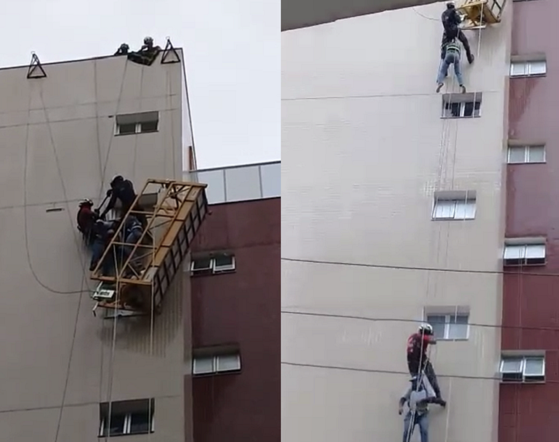 O incidente aconteceu após o rompimento de um cabo de aço que mantinha os trabalhadores suspensos para a realização de uma manutenção no prédio. A equipe estabeleceu uma estratégia que consistiu em montar o ponto de ancoragem acima do prédio, permitindo que fosse realizado o resgate, utilizando técnicas de rapel. Profissionais do SAMU, estiveram no local com o objetivo de realizar avaliação clínica das vítimas, mas não houve feridos.