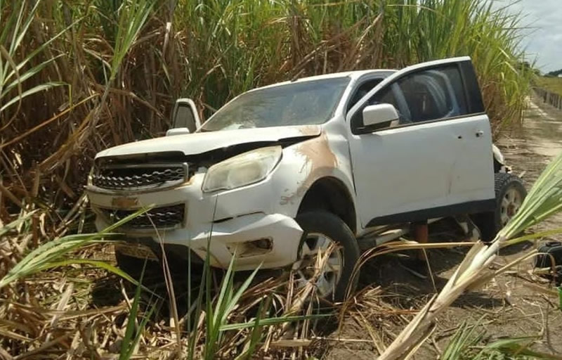 Na caminhonete, além do condutor, viajavam outras três pessoas. Após a saída de pista o veículo capotou e parou em um canavial.