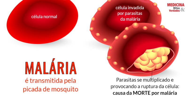 Entre os sintomas estão febre alta, calafrios, sudorese e dor de cabeça. Além disso, também podem surgir dores musculares, taquicardia e aumento do baço. Nos casos letais, o paciente doente o que se chama de malária cerebral.