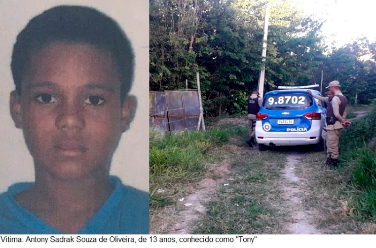 O homicídio do adolescente Antony Sadrak Souza de Oliveira, de 13 anos, conhecido como “Tony”, aconteceu no dia 13 de julho, quando o menor estava em seu momento de lazer, soltando pipa. Ele foi surpreendido por 02 (dois) criminosos, a bordos de uma motocicleta. O carona desceu e atirou várias vezes na vítima, que veio a óbito no local. Na sequência os criminosos fugiram sem deixar pistas. “Tony” foi alvejado por disparos de arma de fogo, na região da cabeça e na mão. Segundo a perícia, havia duas perfurações na cabeça, e duas na mão esquerda, ambas de entrada e saída.