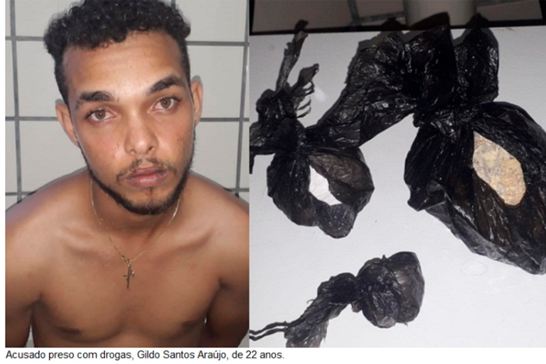O acusado preso com drogas foi identificado como sendo, Gildo Santos Araújo, de 22 anos. Com ele, os policiais apreenderam 300 gramas de drogas (crack e cocaína). Após oitiva, ele foi flagranteado pelos crimes de tráfico de drogas (Art. 33) e pela dupla tentativa de homicídio (Art. 121 CC 14 do CPB), crime contra o referido casal no Bairro Redenção. Em entrevista à equipe de reportagem do Libedade News, o Gildo confessou ser o dono da droga apreendida e que estava traficando há 07 meses. Gildo disse que nunca matou ninguém.