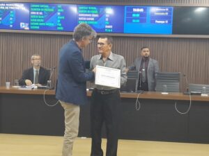 O ex-vereador e empresário, Valdecy Quaresma recebeu uma Comenda de Congratulação da Câmara Municipal de Teixeira de Freitas oferecida pelo vereador Camindo Santana, que muito se empenhou para agradecer e homenagear o empresário pelos relevantes serviços prestados à Teixeira de Freitas desde 1974.