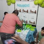 As autoridades visitaram a residência da dona Regina Santos Teixeira, 40 anos, no Bloco 172, que ganhou uma casa mobiliada. E depois já sobre o palanque sortearam o nome da mutuaria Jaqueline Gomes Souza que ganhou uma casa mobiliada no sorteio.